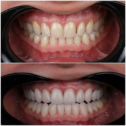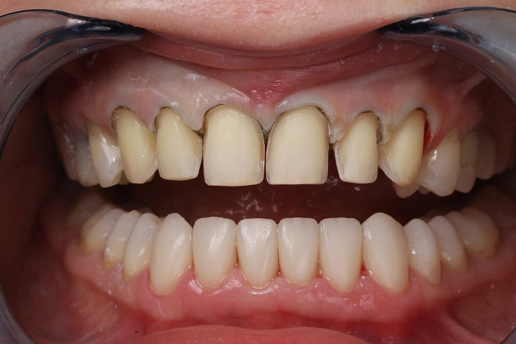 После этого вас пригласят на заключительный этап — установку постоянных виниров. Снимаются временные конструкции, зубы обрабатываются специальными растворами, чтобы обеспечить идеальную поверхность для фиксации.