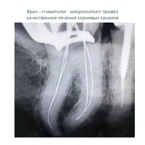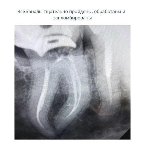 На снимке лечение сложного зуба мудрости со склерозированными каналами.