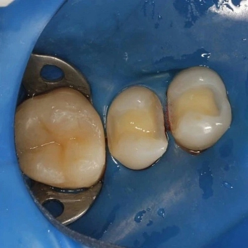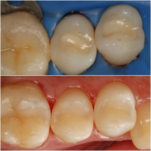 Произведена замена негерметичных пломб с рецидивом кариеса.