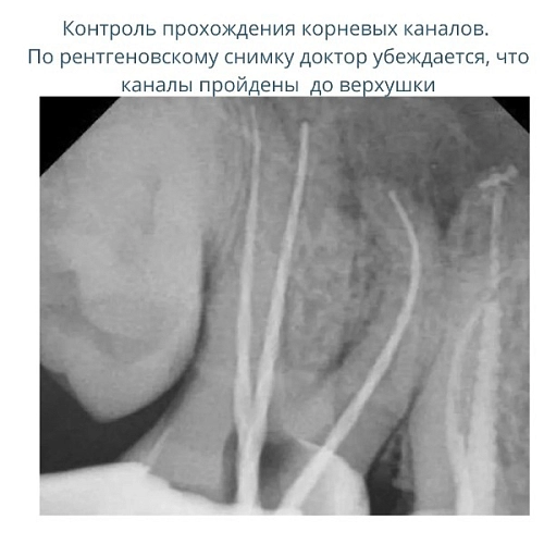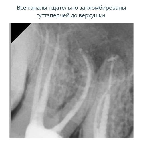 Под микроскопом были найдены все каналы и тщательно промыты.