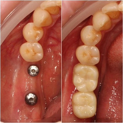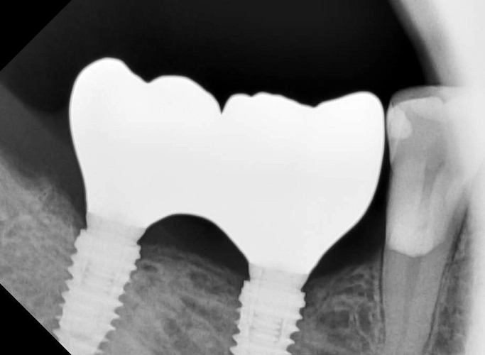 Протезирование на имплантах с подготовкой костной ткани и десны в позиции зубов 47,47